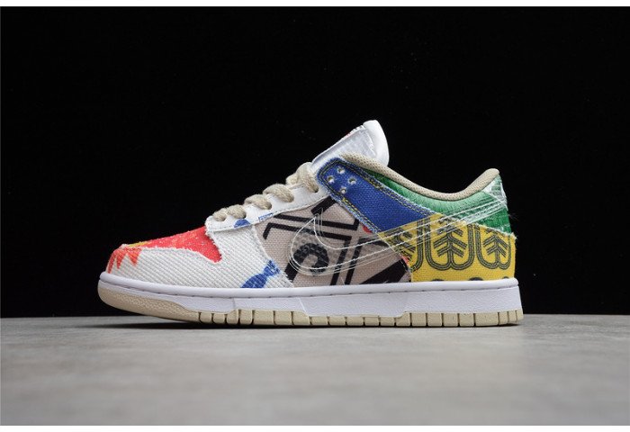 The Nike Dunk Low SP City Market DA6125-900 is a vibrant and eclectic sneaker that celebrates the spirit of global street markets. The upper features a patchwork of colorful graphics, textures, and materials inspired by various packaging and market goods, creating a truly unique look. Details like the barcode on the tongue tag and a reusable shopping bag-inspired insole add to the theme. With its comfortable padded collar and durable rubber outsole, this Dunk Low is perfect for those who appreciate creativity and cultural influences in their footwear.